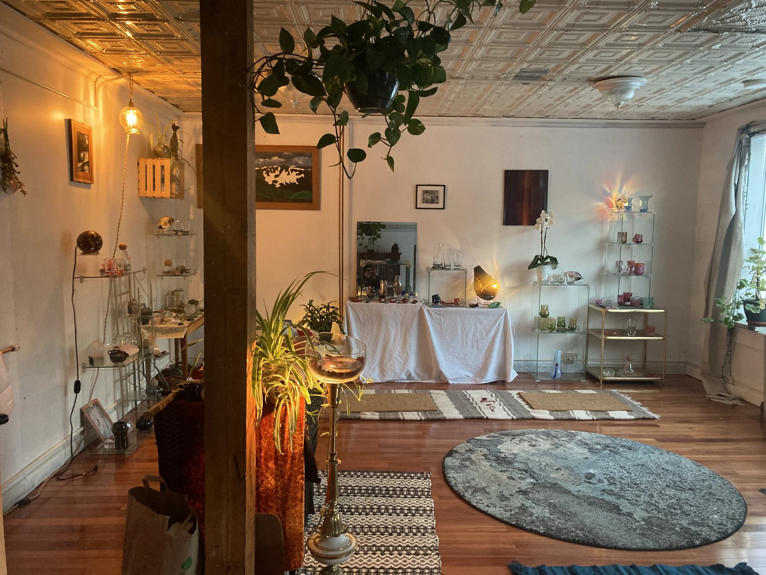 She has also been experimenting with embedding working light bulbs in her glass creations. Those pieces take inspiration from the cosmos. As a result, you can find her store lit up like the Milky Way past dusk, shooting starry colors onto the studio walls.