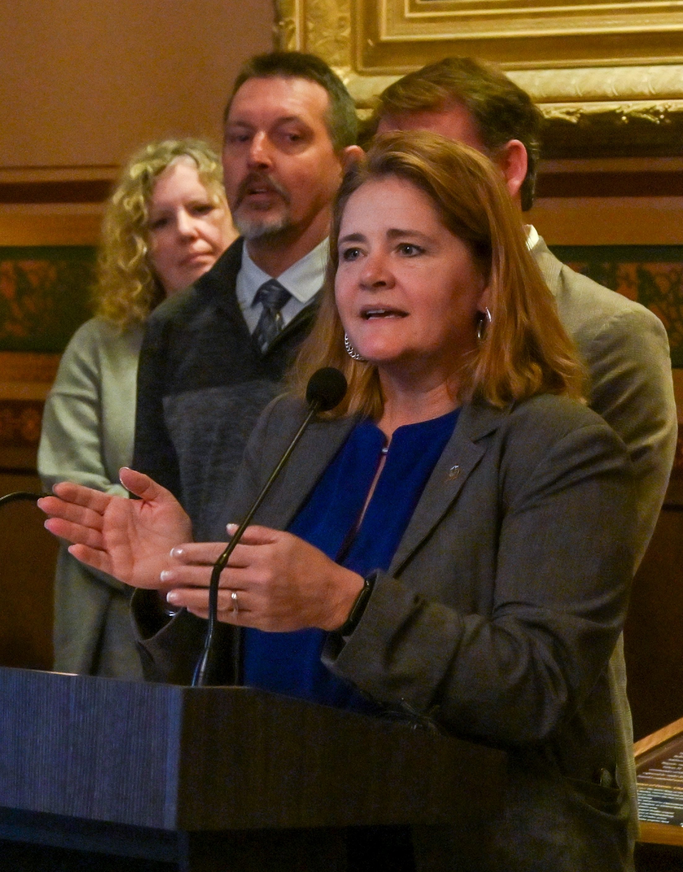 Secretary of State Sarah Copeland Hanzas speaks. Photo by Gordon Miller