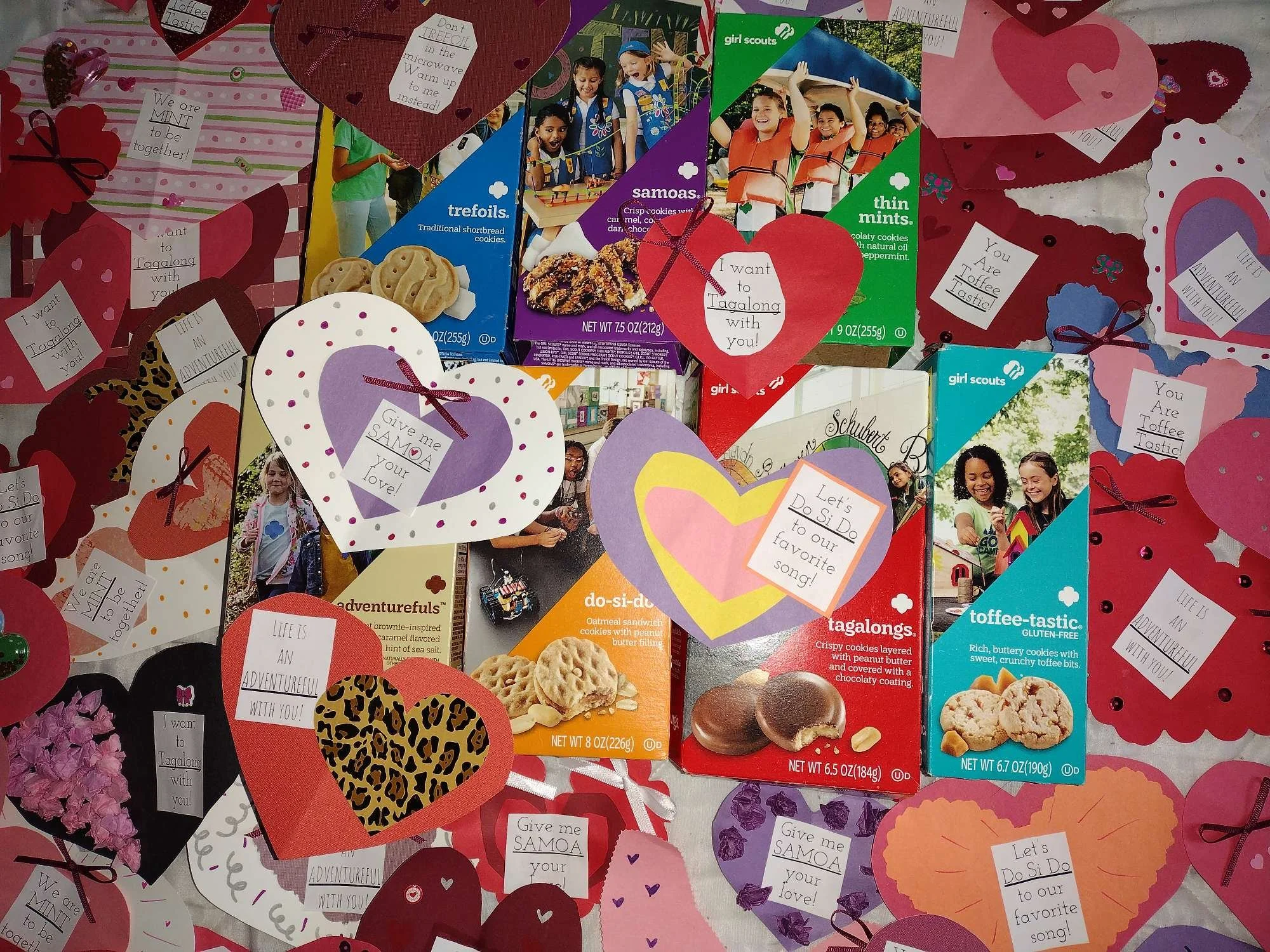 Handmade Valentines have messages that match the Girl Scout cookies. Courtesy photo