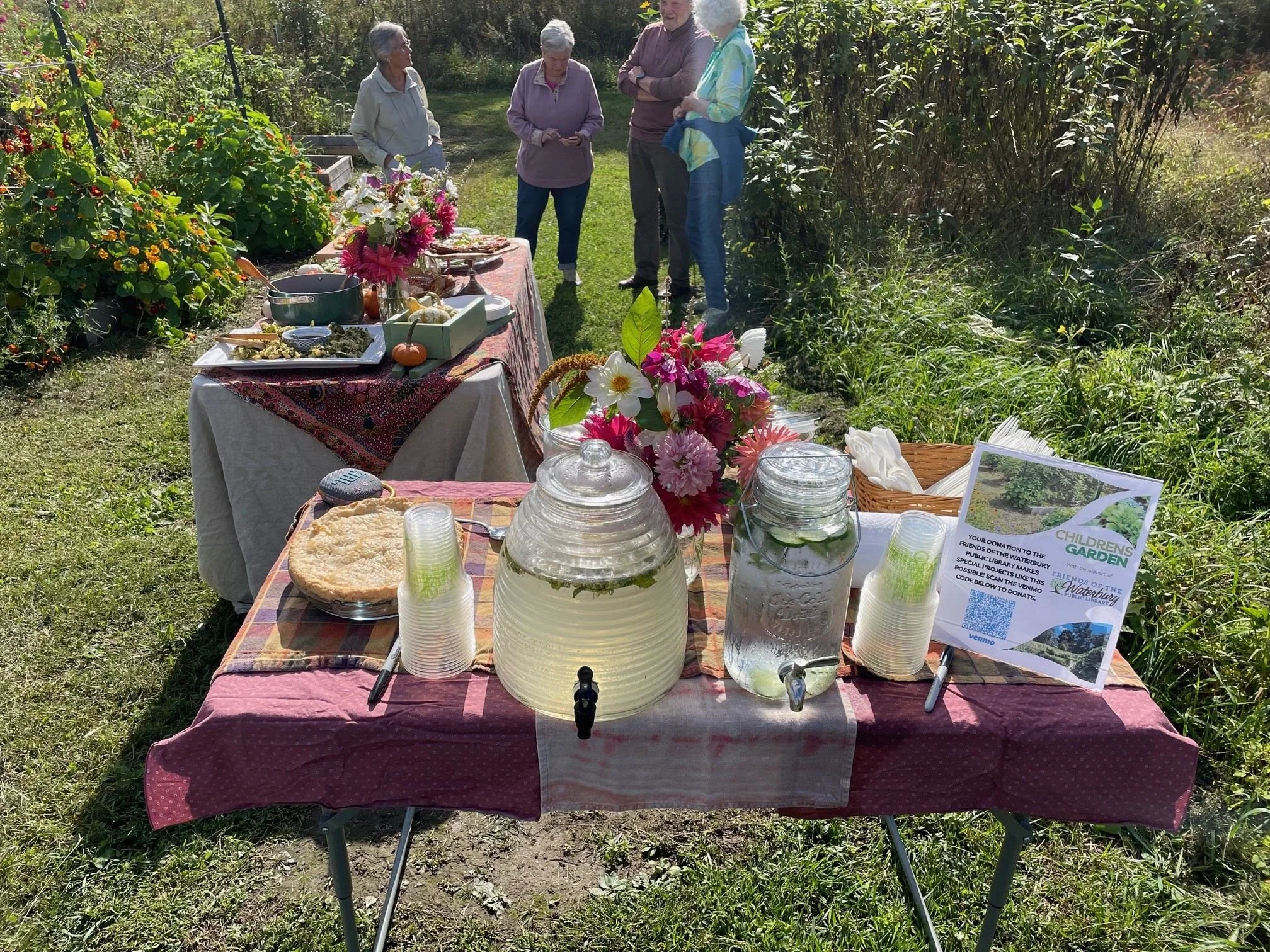 July’s Silent Reading Party took place in the library garden. In August, readers head to the Waterbury Dam. (See details below.) Photo courtesy of Bridgeside Books