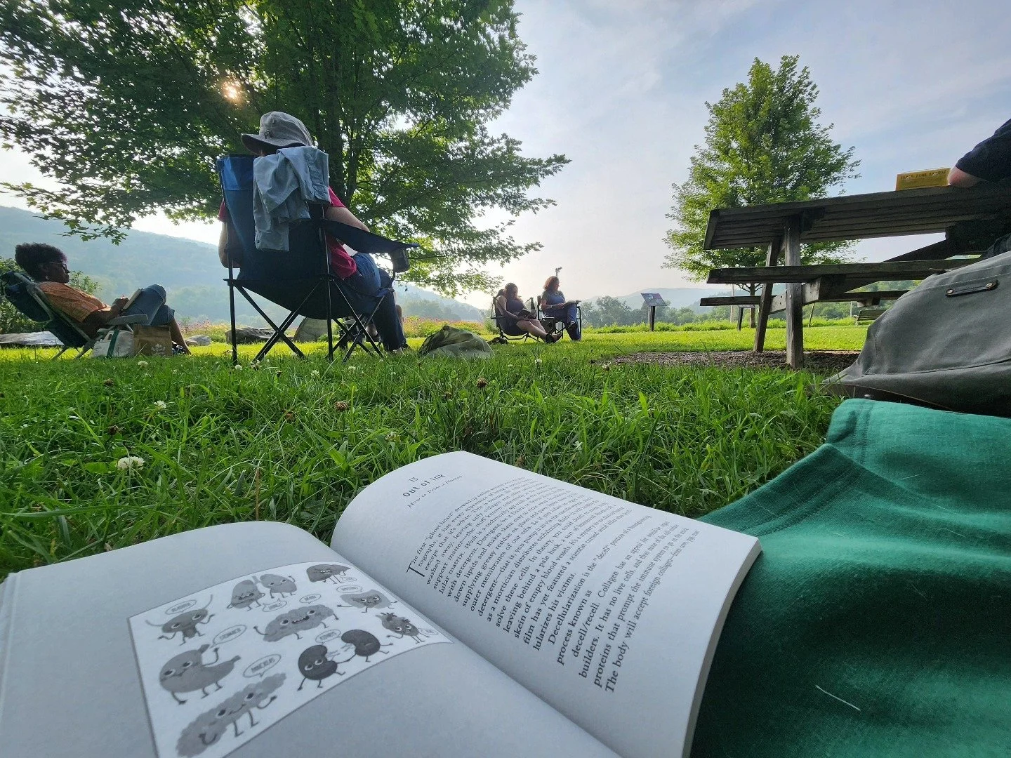 Bring a book, a chair, some water, and bug spray would be a good idea, too. Settle into an hour or so of quiet time in a beautiful, peaceful setting. At the end, share a bit about your book with the group if you’d like.