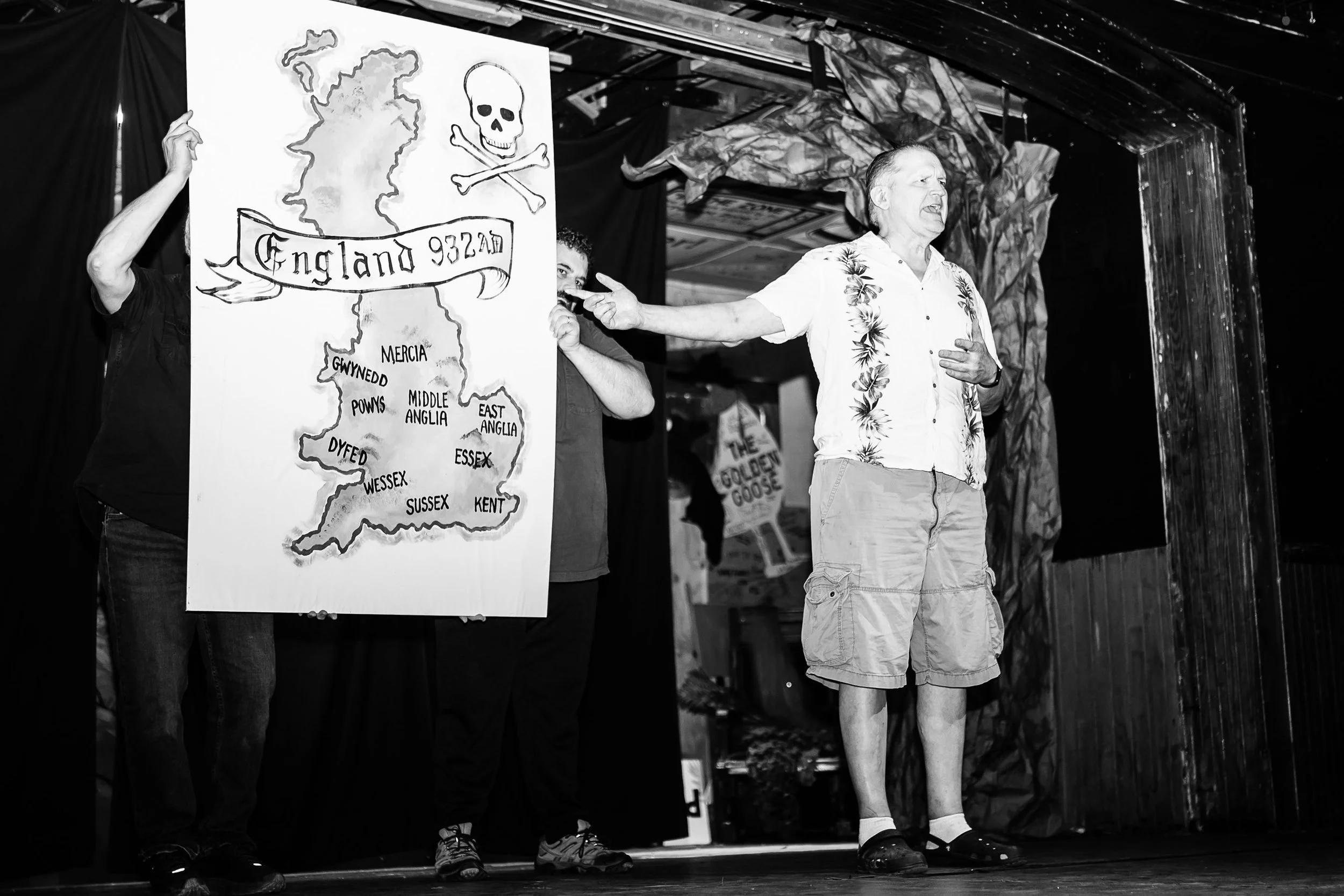 The Valley Players cast of 15 is led by Karl Klein (from Fayston) as King Arthur, Hilary Delisle (of Hinesburg) as the Lady of the Lake, Lonny Edwards (from Lincoln) as Sir Galahad, Jon Sanborn (of Barre) as Sir Lancelot, and Ashley Hall (of Warren) as Patsy, King Arthur’s underappreciated servant and “horse.”