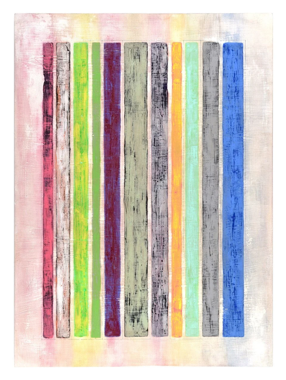 Hitzig methodically paints, sands, polishes, and shellacs the work multiple times before calling it complete. In fact, it is this process that he uses to physically blend the paints and construct the final work – allowing him to focus on the surface and finish of the artwork.