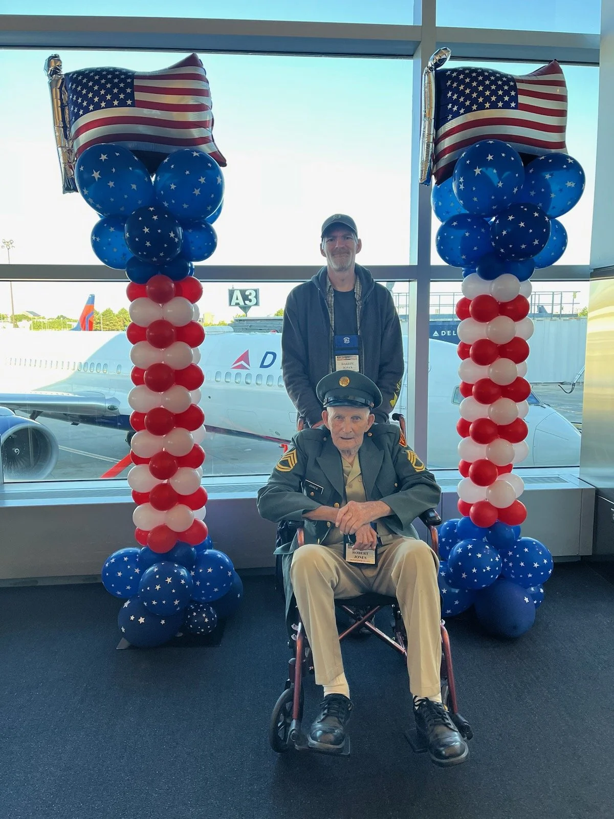 Jones, 88, was selected for his seniority, Byron said, and his son Darrin accompanied him for the journey.