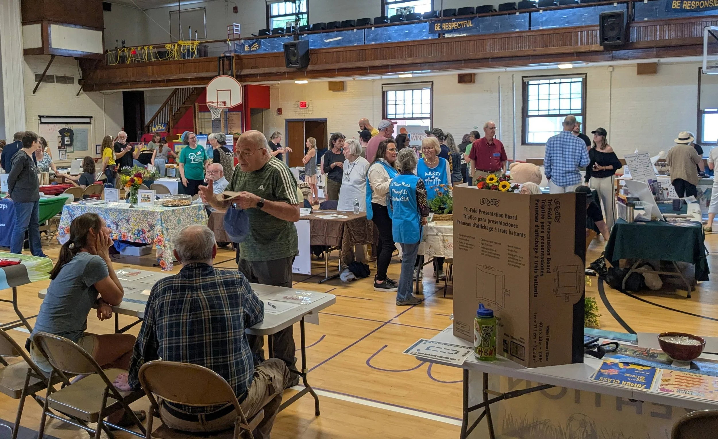 Community groups set up tables to recruit volunteers at the 2025 Community Volunteer Fair. Photo courtesy of Revitalizing Waterbury