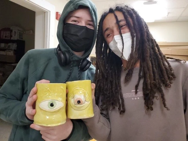 After-school studio art in spring 2022 included work with ceramics and paint/pen art. Photos courtesy MakerSphere