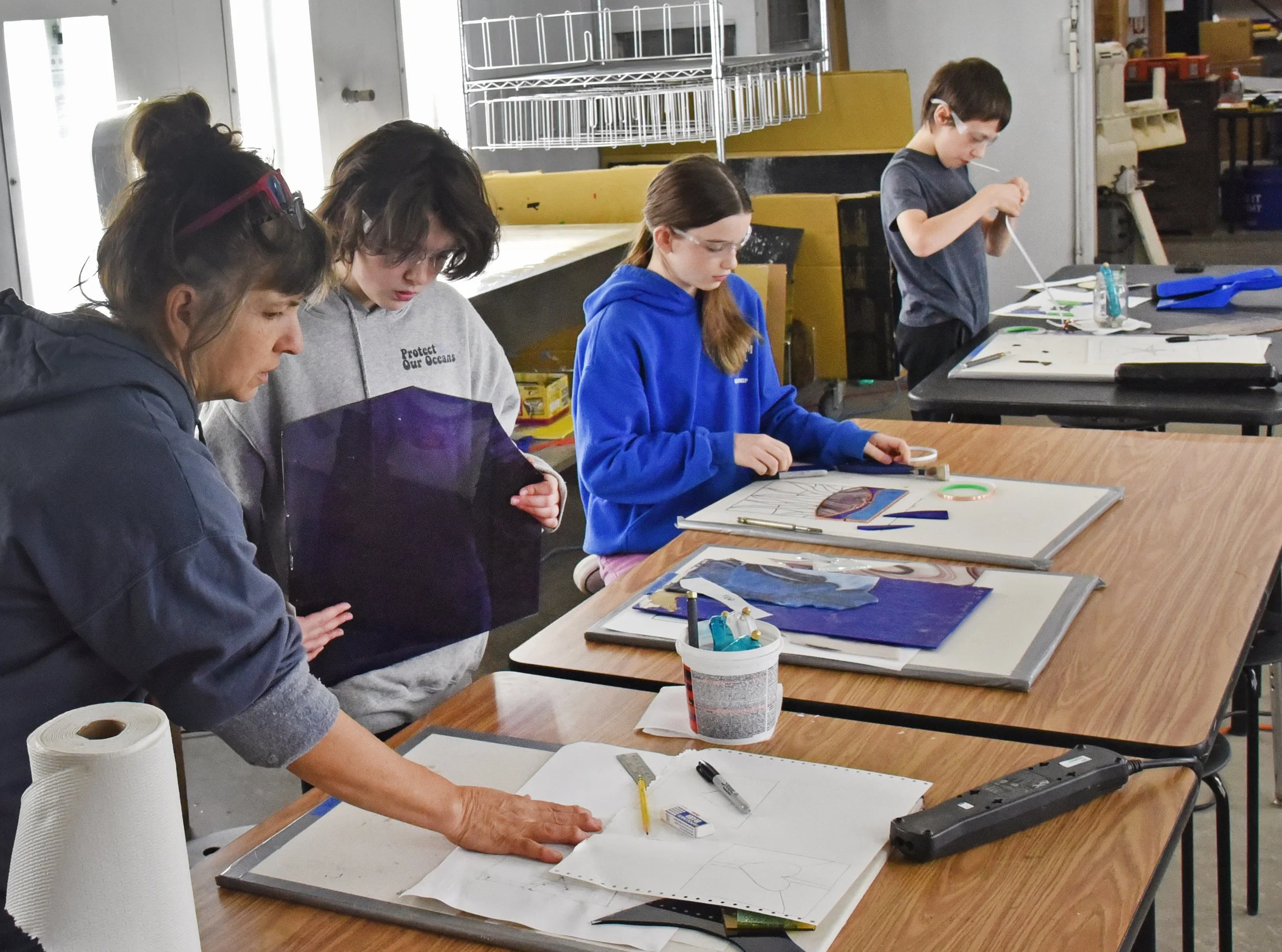April 2, 2026 | By Waterbury RoundaboutStudents work on stained glass projects at MakerSphere. File photo by Gordon Miller
