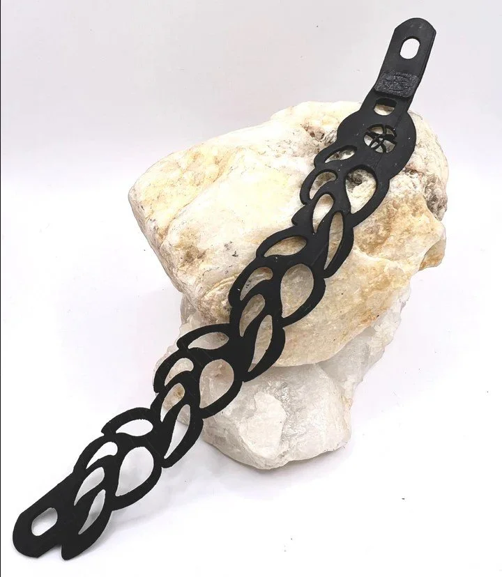This upcycled bracelet by craft show vendor Alixandra Klein of Alixandra Barron Designs is made from discarded bike tires. Courtesy photo