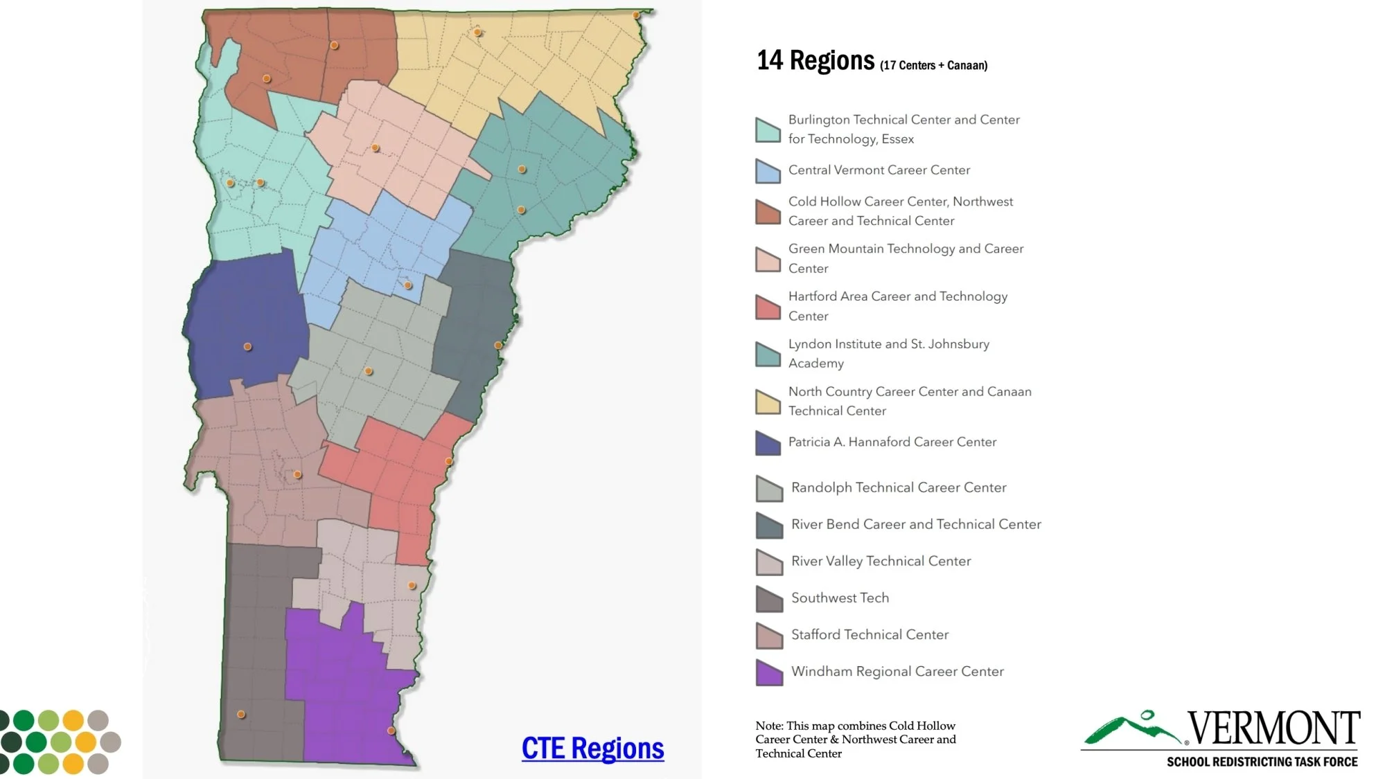 The Vt. School Redistricting Task Force is eyeing the map of career and technical education centers as a template for new school districts for the state. Click to enlarge