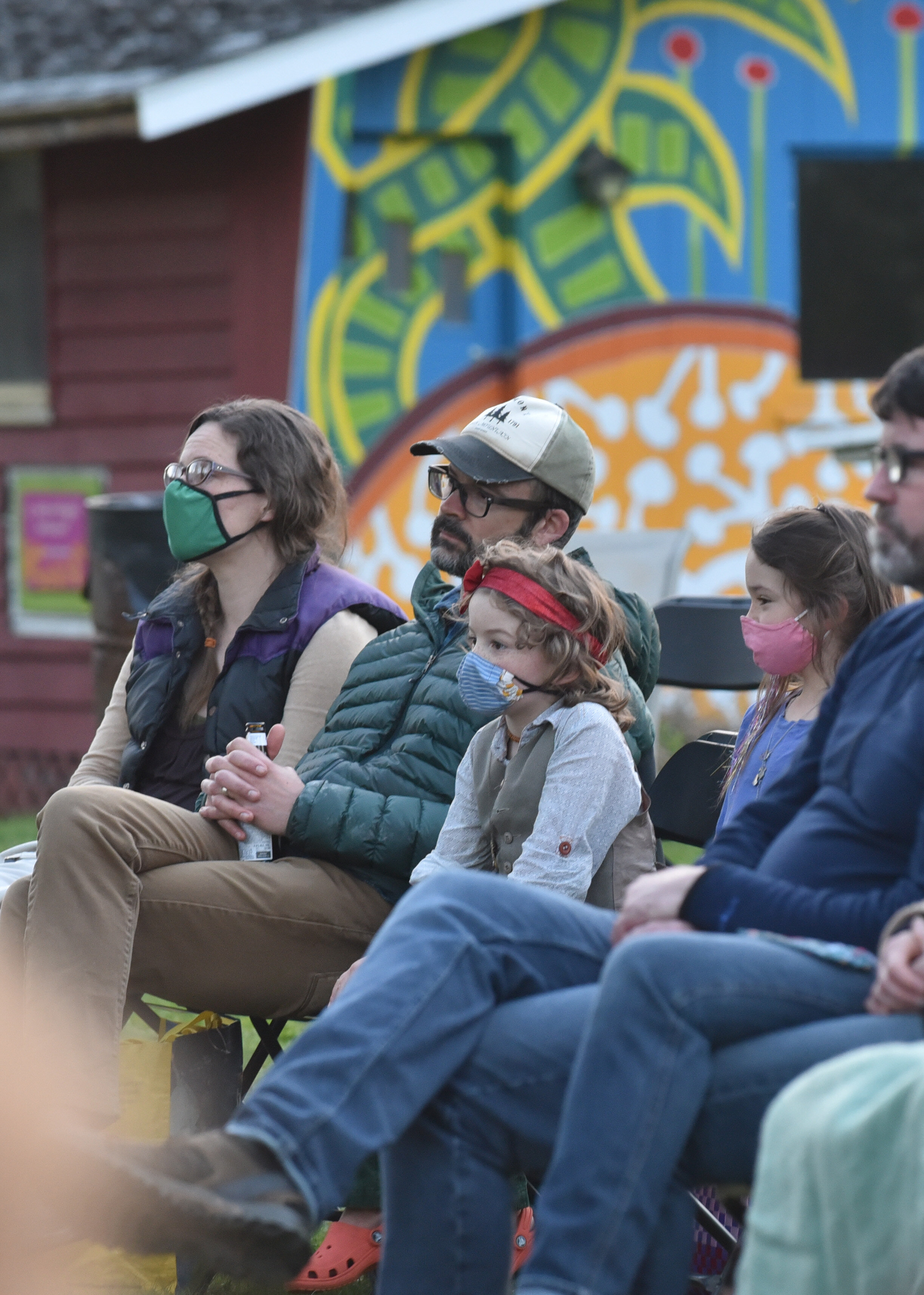 Three nights, three shows. Outside from sunset until the stars and moon provided house lights, Harwood Union Theatre presented the classic, “The Fantasticks” musical at Camp Meade last weekend. Students in the small cast mastered COVID-19 protocols to bring rehearsals together in person and perform together on stage with masks that allowed for microphones to be positioned carefully. Sets and props were at a minimum. The pit orchestra boiled down to Music Director Stefanie Weigand and Alison Cerutti providing accompaniment. An understanding audience embraced the outdoor togetherness at the Middlesex venue. And somehow, it all worked.