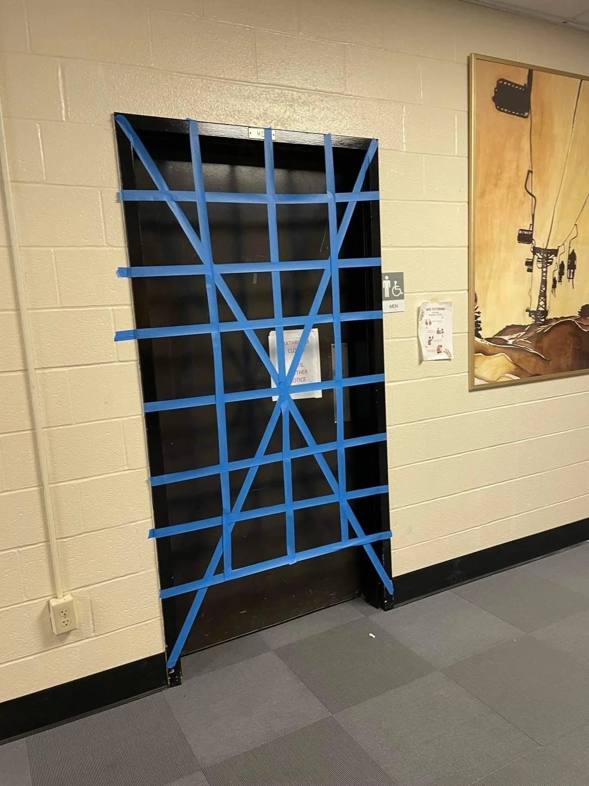 A closed school bathroom is bolted shut earlier this year. Provided photo