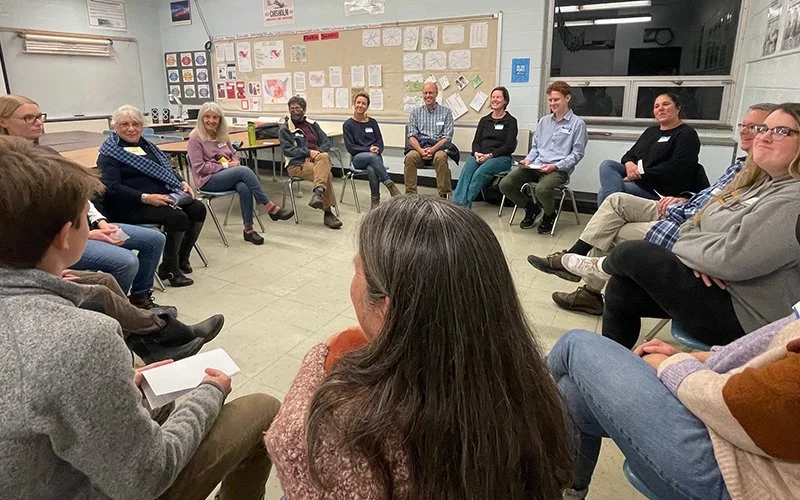 “What does it mean to forgive?” That was the question at the Socrates Café at Harwood on December 6. For the first time in three years, students, administrators, school board members and community members of all ages gathered at the school to engage in civil dialogue to discuss a timeless and timely question. The event was led by students from the Harkness Leadership class, which is an elective English course at Harwood Union High School. The class came up with the question after several brainstorming sessions. Students from the class, which is mostly comprised of sophomores, led community discussions in groups of 15-20 people to bring the community together.