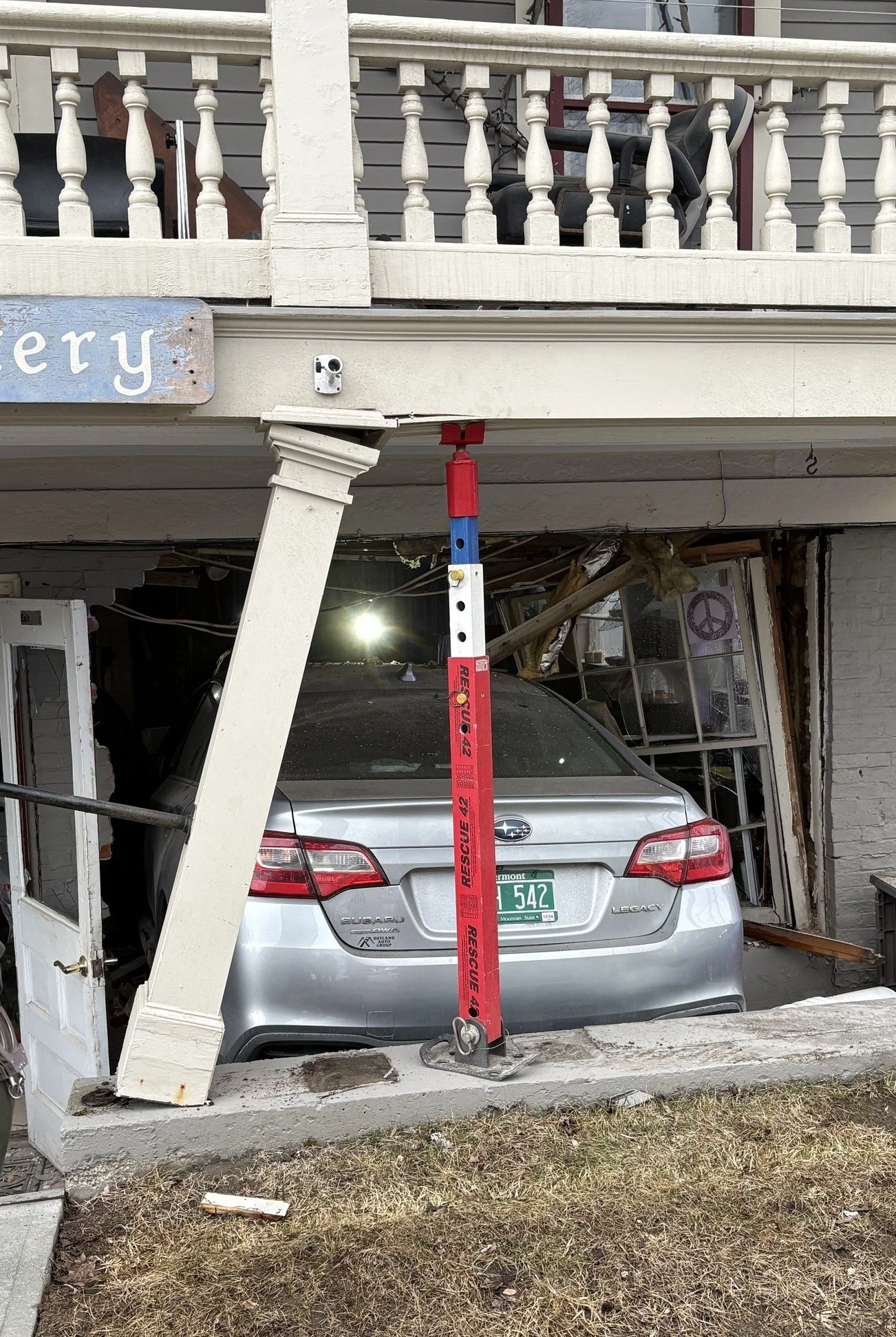 April 6, 2026 | By Lisa Loomis | The Valley ReporterNo one was injured in the three-car crash that left a Subaru in a building on Main Street in Waitsfield on Tuesday. Photo by Lisa Loomis / The Valley Reporter
