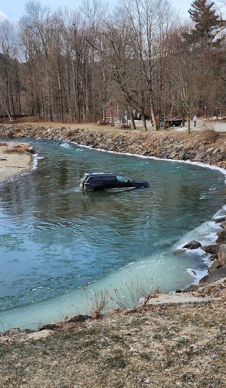 Troopers said they received a call at 5 a.m. on March 28, from 56-year-old Thomas Wiegel of Waitsfield, who said his 2021 Jeep Grand Cherokee had been parked and fell out of gear, causing it to roll into the river. No one was in the vehicle at the time, police said.