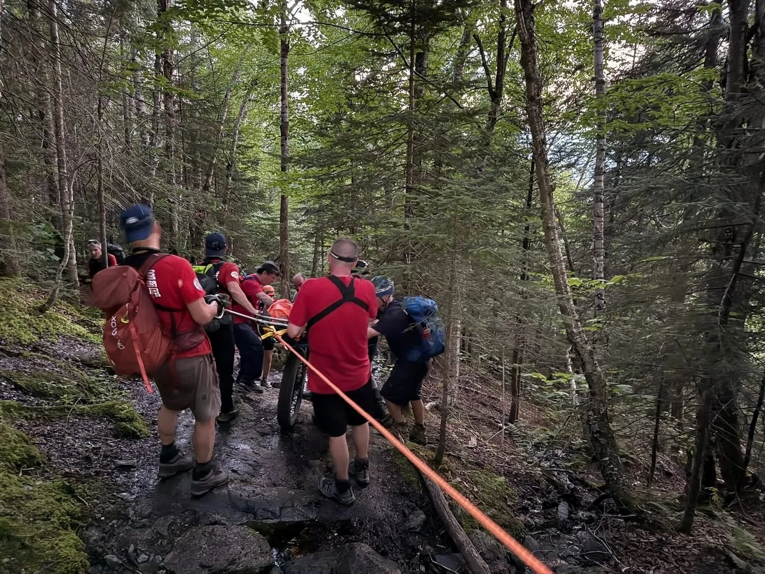 Waterbury Backcountry Rescue and Stowe Mountain Rescue teams headed out in what they described as “oppressive heat and humidity” after getting the call that a 62-year-old woman had fallen near the summit, injured her hip, and was unable to make it back down the trail.