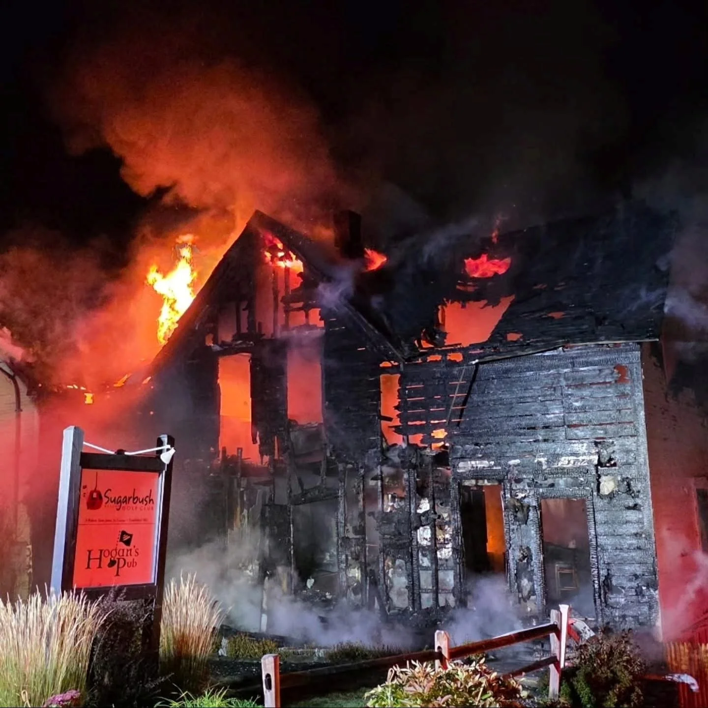 On Wednesday night into Thursday morning, crews from five local fire departments, including Waterbury, worked overnight to extinguish a blaze that ultimately claimed the clubhouse and Hogan’s Pub.