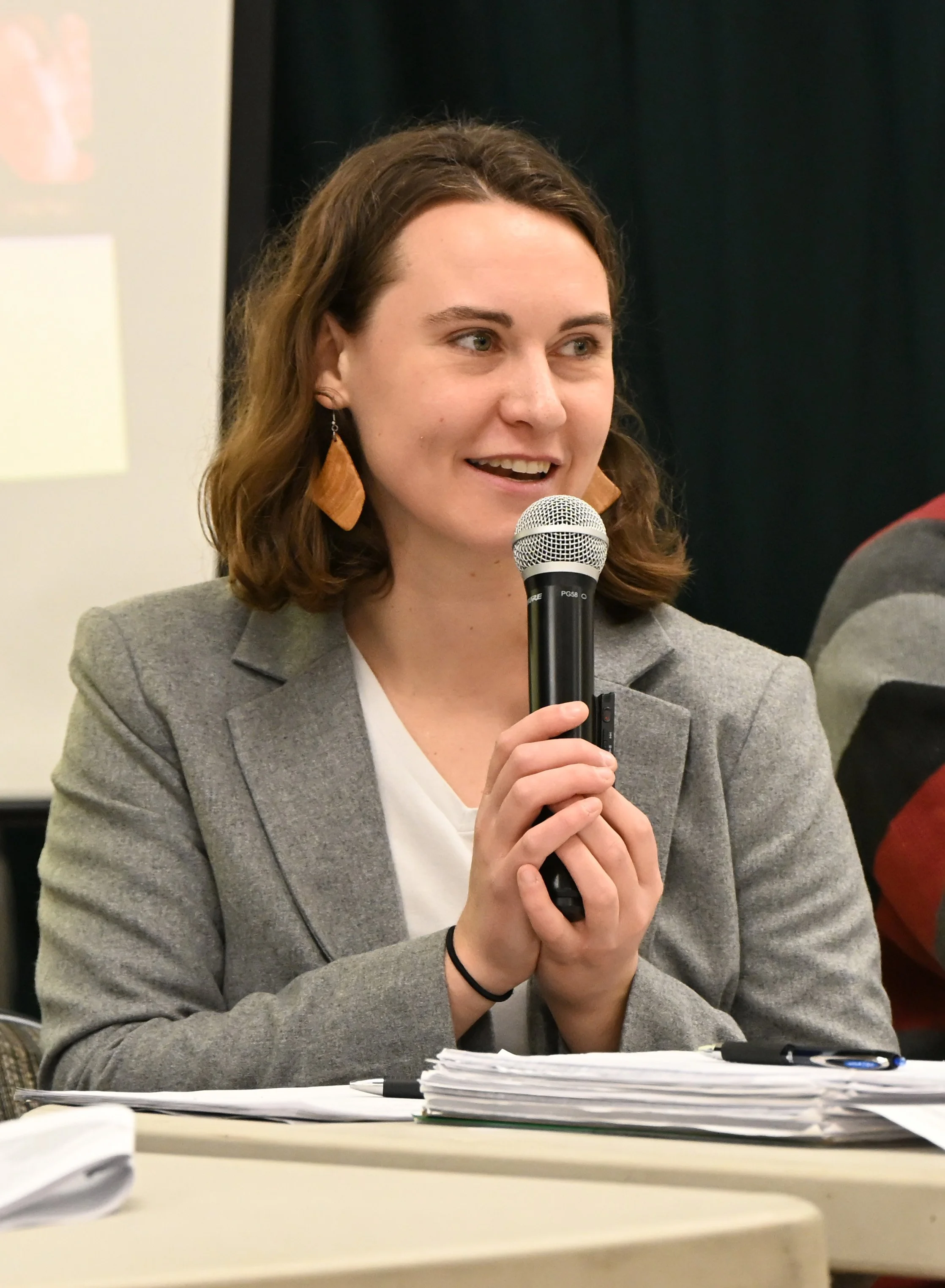 “And then add to that: you’ve dealt with not one, not two, but three floods during your term. You’ve oriented a new municipal manager. You’ve dealt with FEMA. You’ve dealt with multiple resignations in our municipal government—the municipal manager that was being oriented, the town planning department, the town clerk, the librarian, and on top of it all, a lot of local politics in Waterbury,” Wood ticked off. “So during this tumultuous time, we have had the wonderful good fortune to have Alyssa Johnson lead our select board and our community. Alyssa is a dedicated individual who is dedicated to effective local government. I have never in my life met anyone who absolutely geeks out about zoning and planning. Alyssa does.”