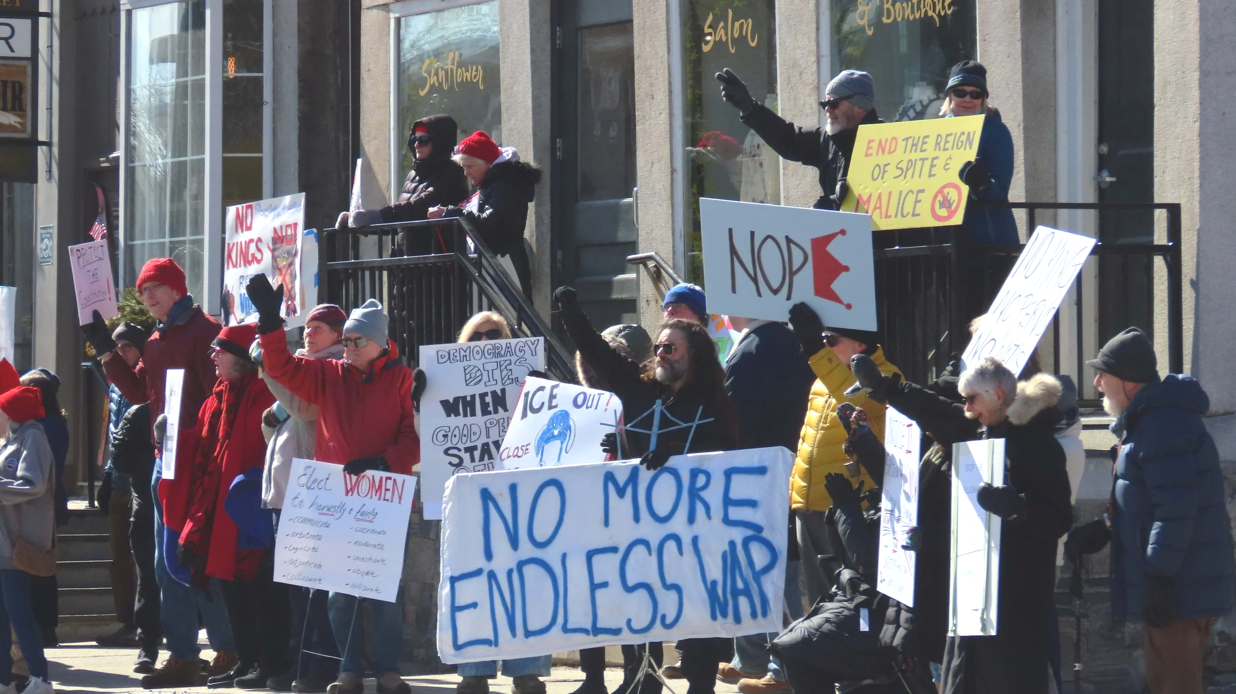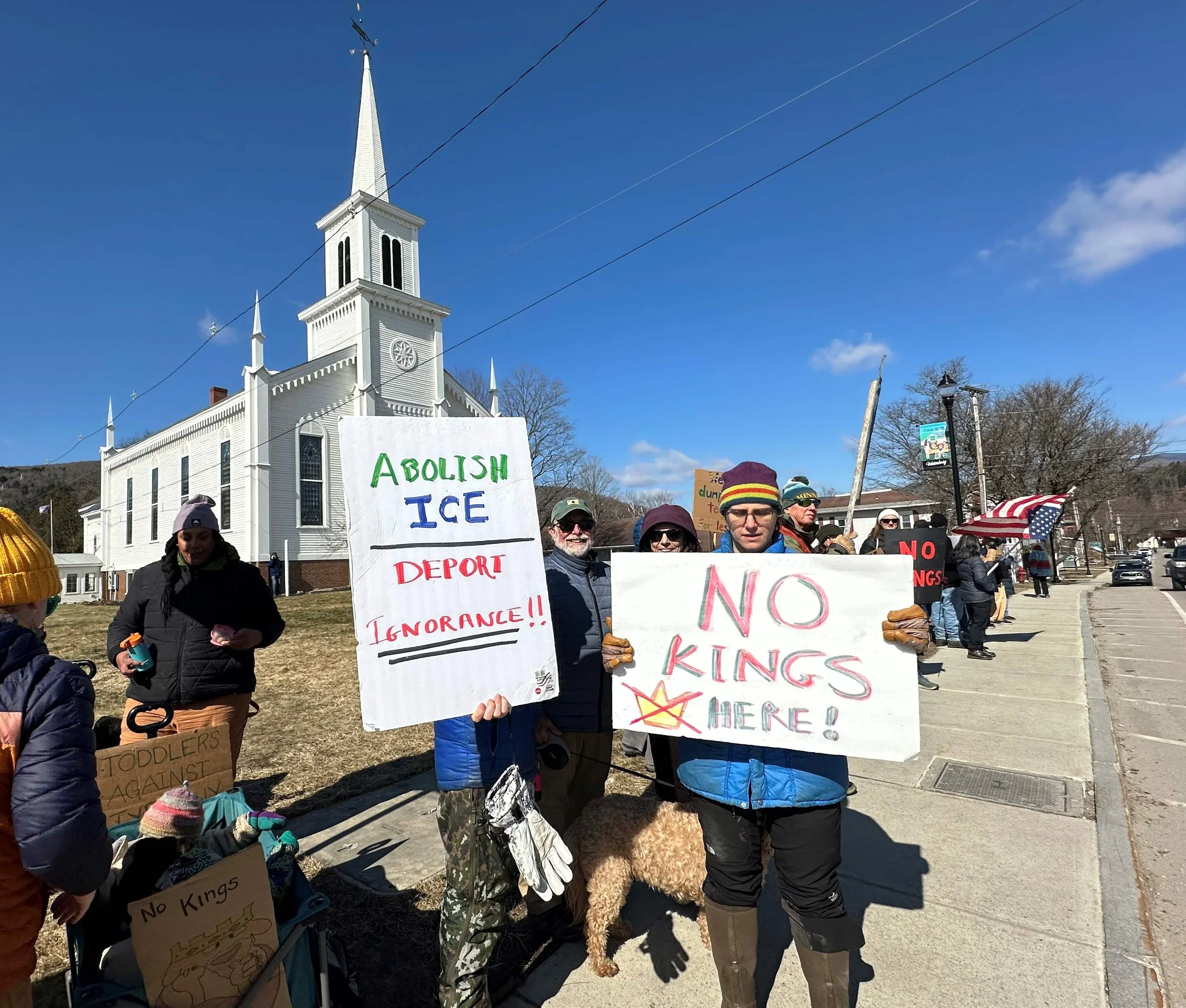 The demonstration wound down in time for many local activists to travel to other later No Kings events in Burlington and Montpelier.