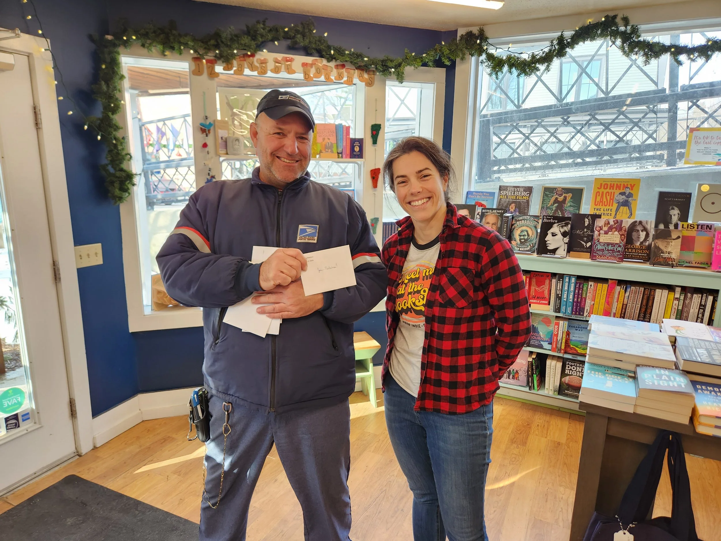 In the holiday Acts of Kindness honors, Bridgeside Books owner Katya D’Angelo nominated mail carrier Jon Whitley for always being friendly. Photo courtesy of Revitalizing Waterbury