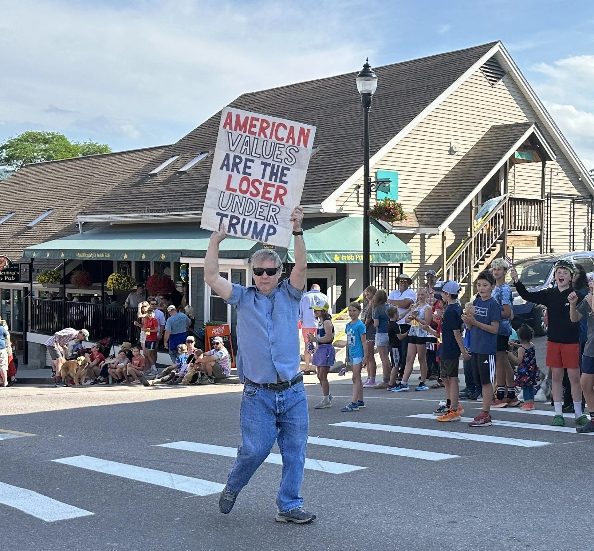 Some of you may know that I have stood against Trump. I stood with my sign every day from November 9, 2016, through December 20, 2019 (when he was justifiably impeached). That's 1,190 days (minus five days that I was physically unable to do so). I stood in the rain, cold, heat, wind, whatever, to show what one person can do. I received a lot of colorful feedback during those days – thank you to those who supported my effort. But I always saw my sign as a mirror. The language said, “American Values Are the Loser Under Trump.” And what I wanted folks to consider is, “why is that guy standing here?" And then hopefully to look up and consider what was going on. I believe that human decency wins out when it pays attention.