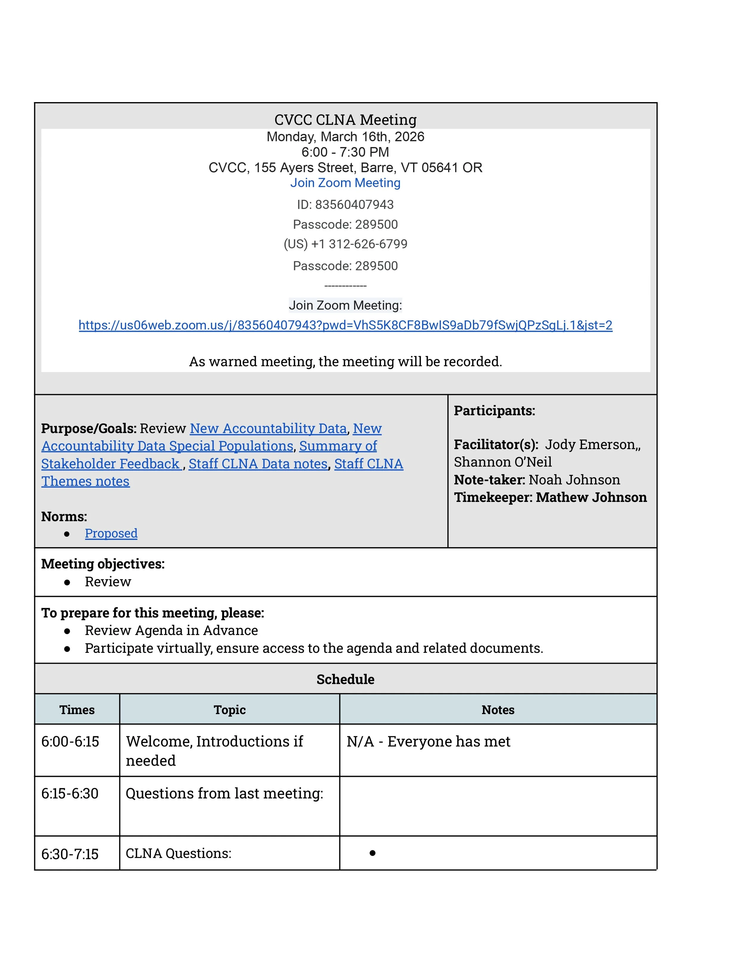 Notice: Central Vermont Career Center School District upcoming meeting warnings