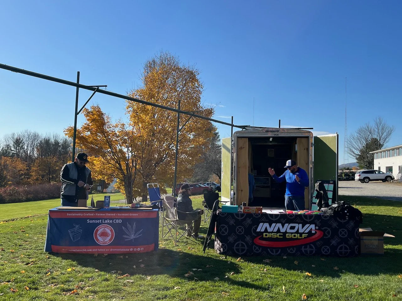 The relaxed atmosphere can be partially attributed to the close friendship between the organizers. The group of friends were stationed in lawn chairs by Young’s Disc Golf Vermont trailer and could be heard laughing over the sound of reggae music and discs hitting metal baskets.
