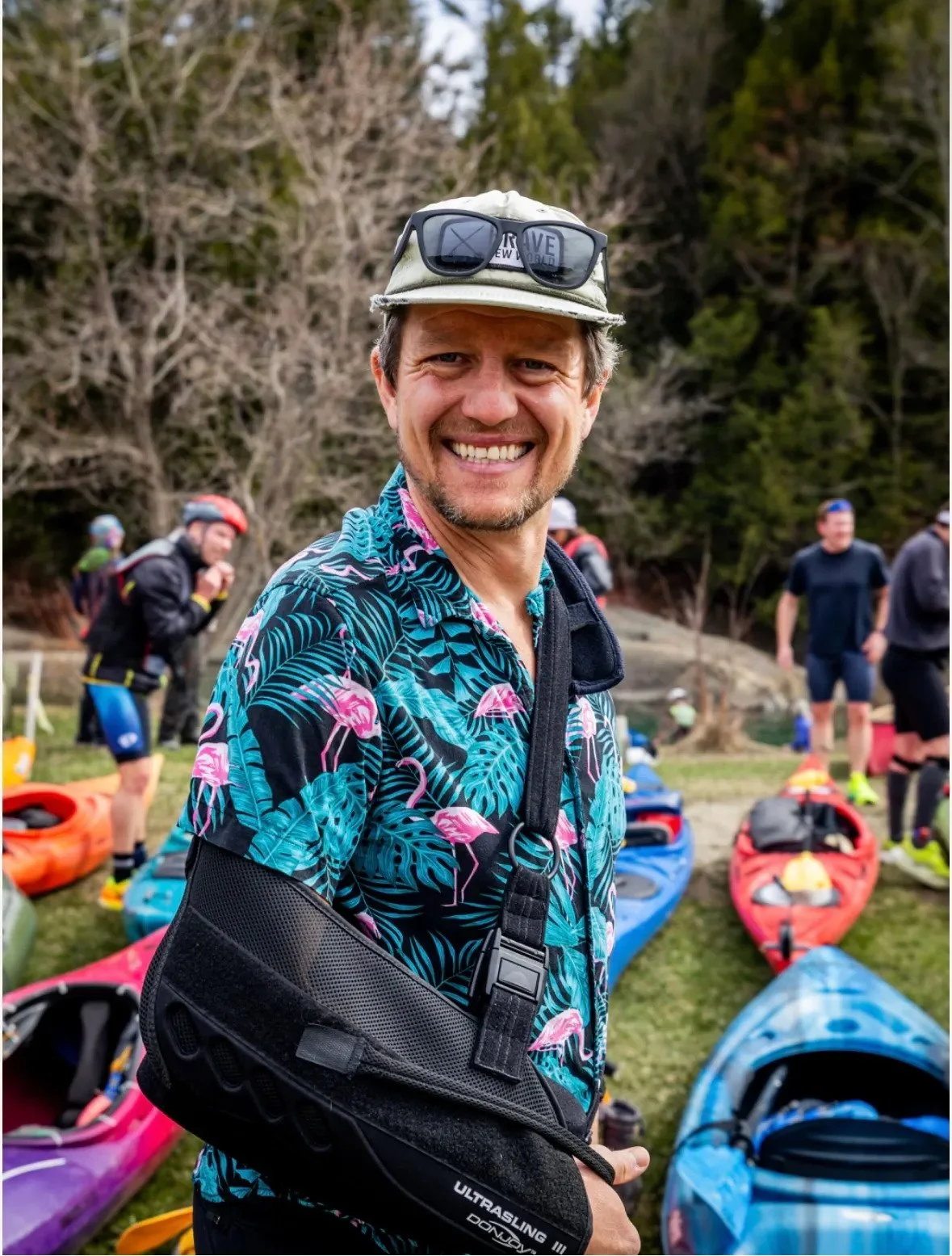 Canoes and kayaks lay out as more participants finish the paddle portion. Photo courtesy of Photos By Kintz